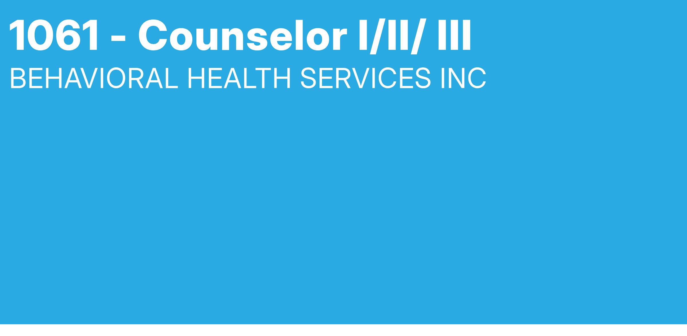 Behavioral Health Services (BHS) is a non-for-profit, community-based health care organization, whose mission is to transform lives by providing substance abuse, mental health, drug-free transitional living, family preservation, prevention and Family Health Center and other related health services to the residents of Southern California. If you are interested in being a part of this dynamic organization, please apply.