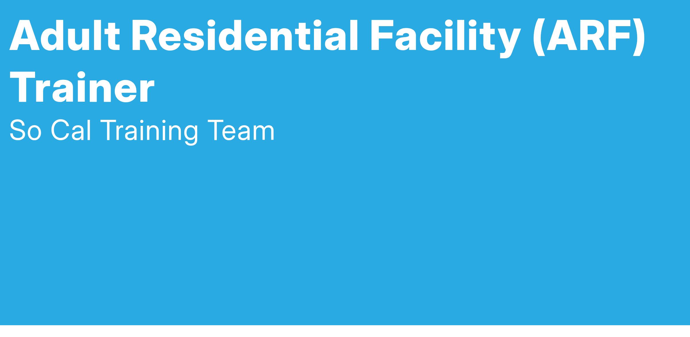 We are seeking a knowledgeable and experienced Adult Residential Facility (ARF) trainer to deliver training programs for, new and existing administrators, support personnel working in elderly care settings. The trainer will be responsible for teaching the ARF 35-hour initial certification and continuing education in compliance with California Title 22 and Community Care Licensing requirements.