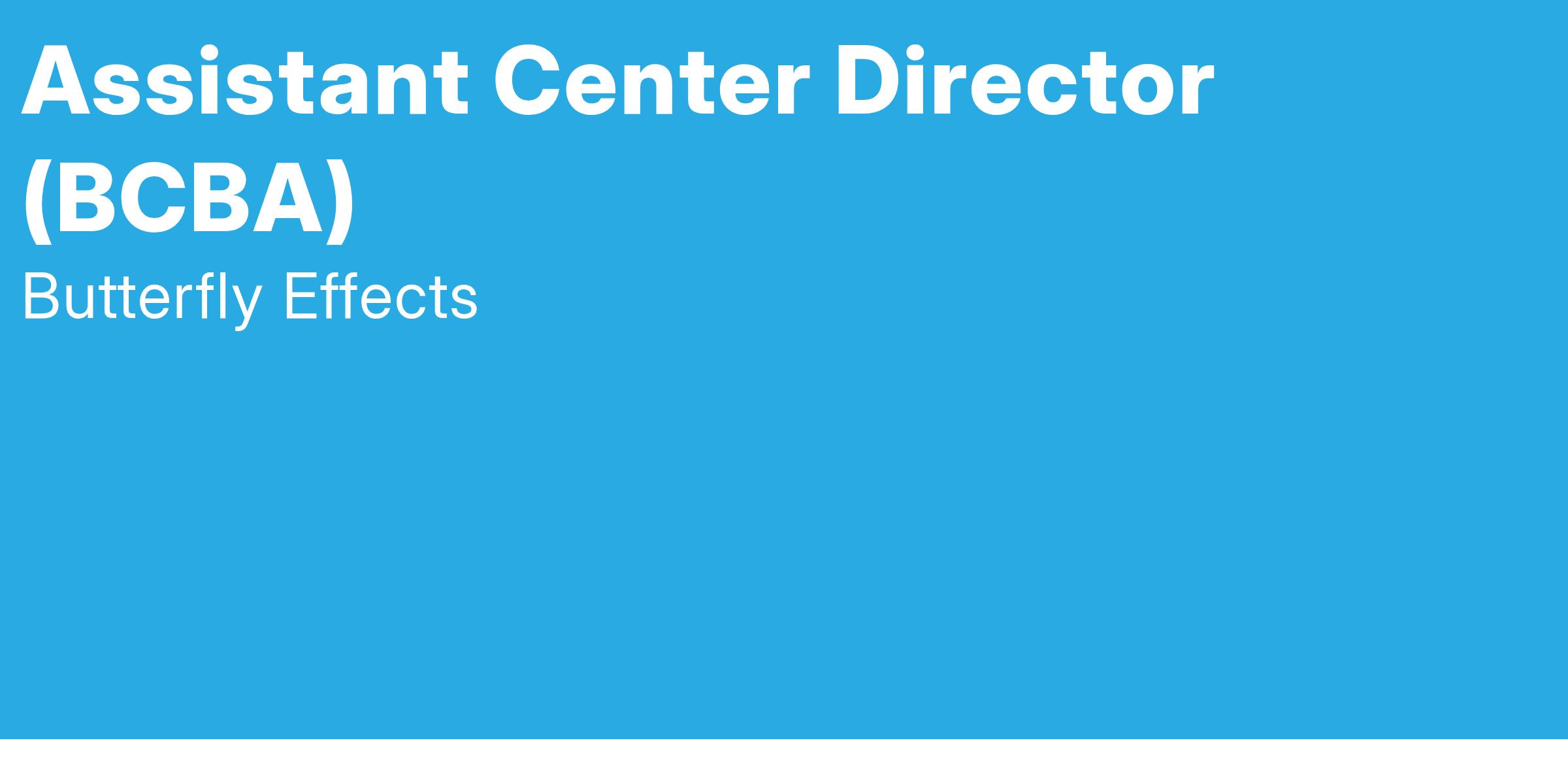 We are looking for a passionate onsite BCBA leader to direct and further develop the clinical and operational services in our ABA-based center. Reporting directly to the Center Director, in collaboration with the Senior Regional Director, you will be an integral part in fulfilling our mission to "make a socially meaningful change in the lives of children and families" and help individuals affected by ASD achieve their full potential. We want you to help build a culture where child progress is the main priority, your team enjoys coming to work, and families are valued, respected, and heard. All Butterfly Effects centers are designed to meet the developmental needs of young children affected by ASD.