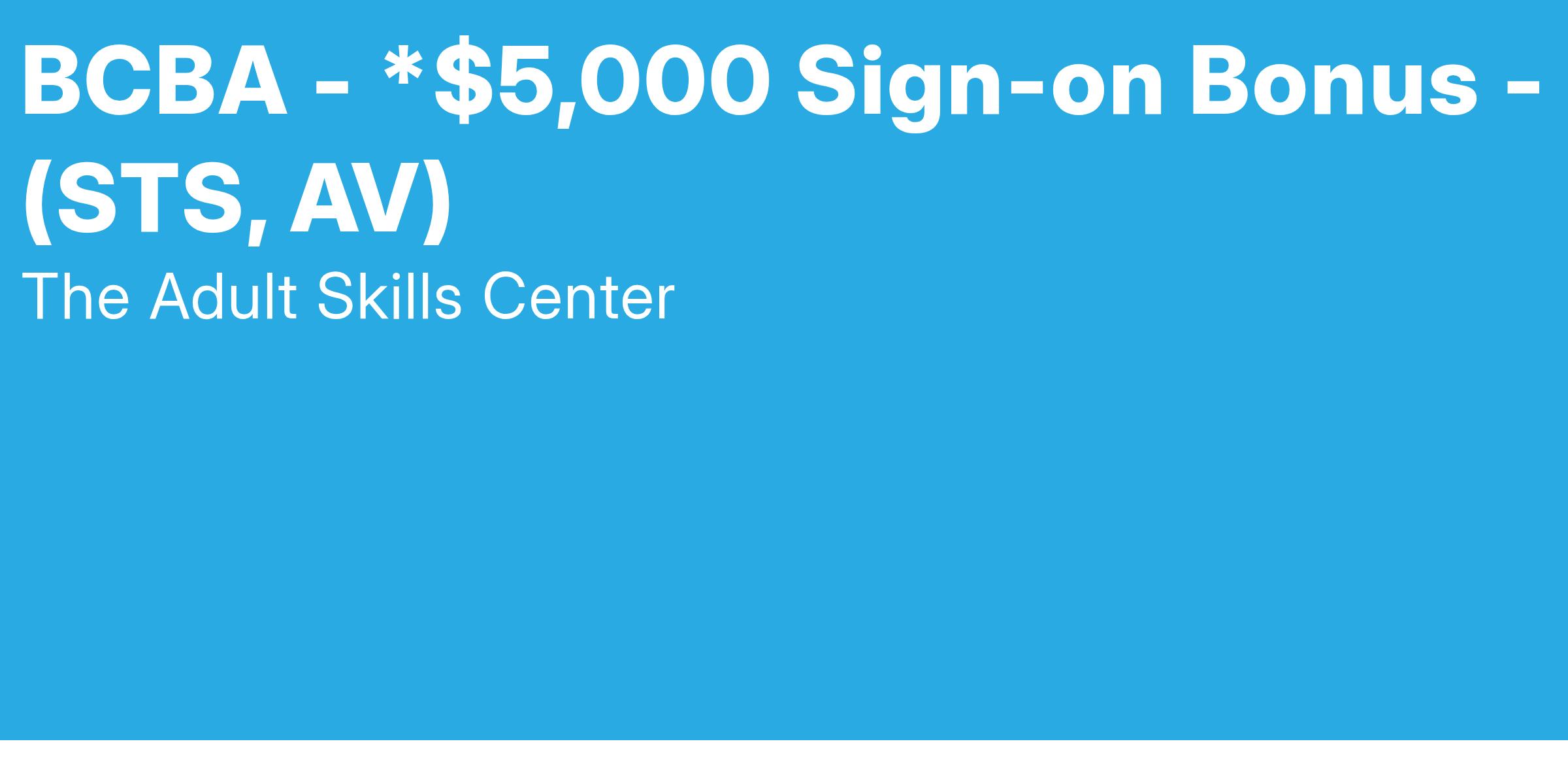 The Adult Skills Center is hiring BCBAs in the Santa Clarita, San Fernando, Mojave, and Antelope Valleys!