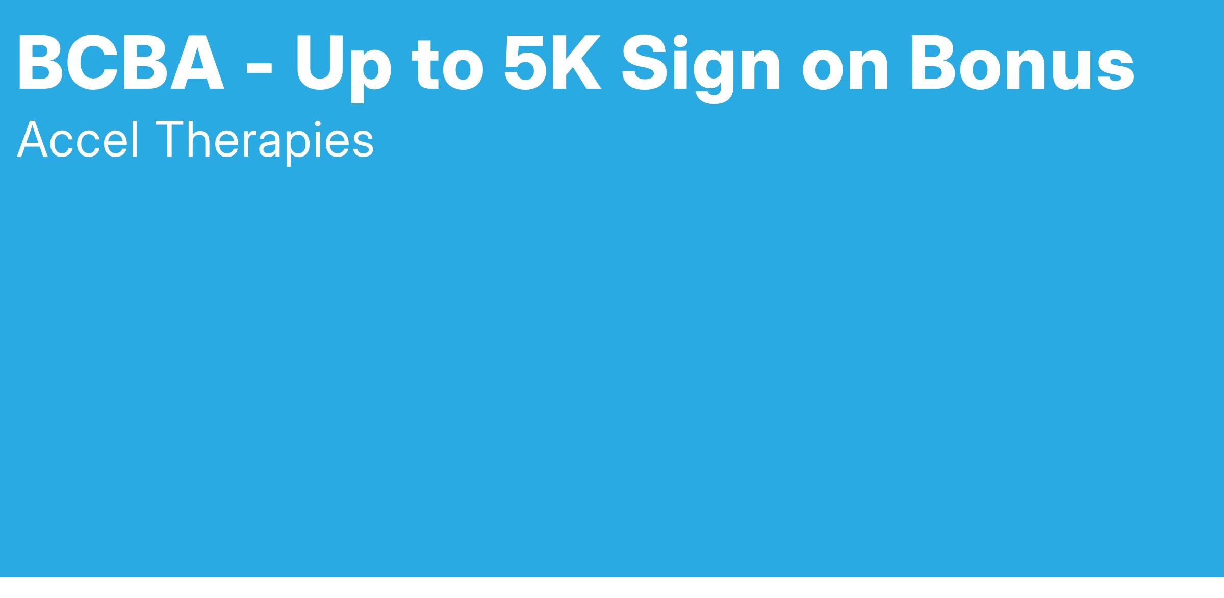 Accel Therapies is hiring Board Certified Behavior Analysts (BCBAs) who are passionate about clinical excellence and being part of a collaborative, supportive team. As a Clinical Supervisor, you’ll join an organization that prioritizes your growth and impact by reducing administrative burdens and allowing you to focus on what matters most — delivering high-quality clinical care.
