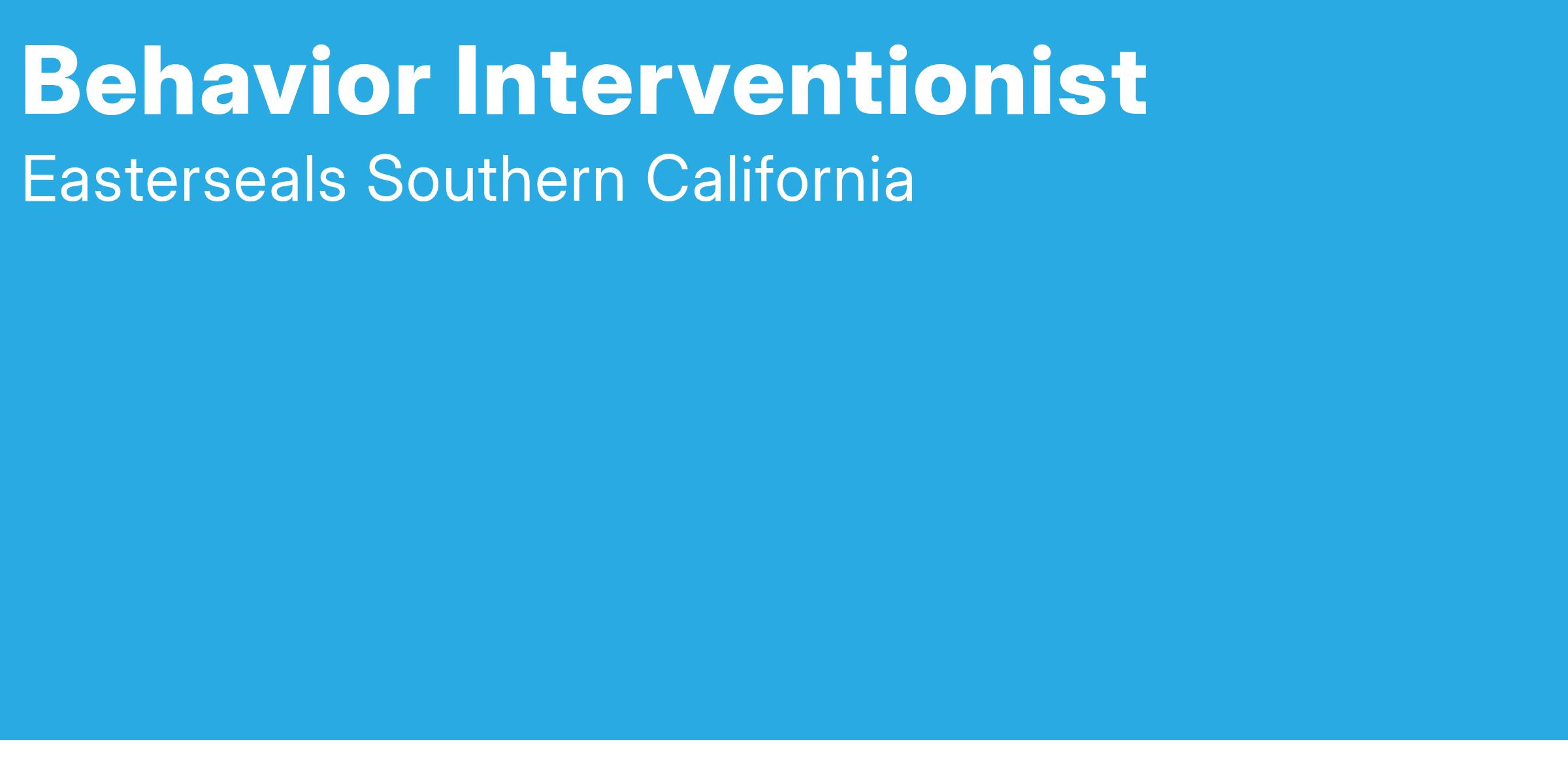 Overview:Easterseals Southern California has fantastic opportunities for individuals looking to begin or continue a career in the fields of psychology, behavioral health, or autism services. Our Behavior Interventionists provide in home, ABA based therapy sessions to families and children on the autism spectrum. Are you interested in gaining a greater understanding of autism and behavioral therapy? Do you love working with children? We provide ongoing training and clearly defined career paths.