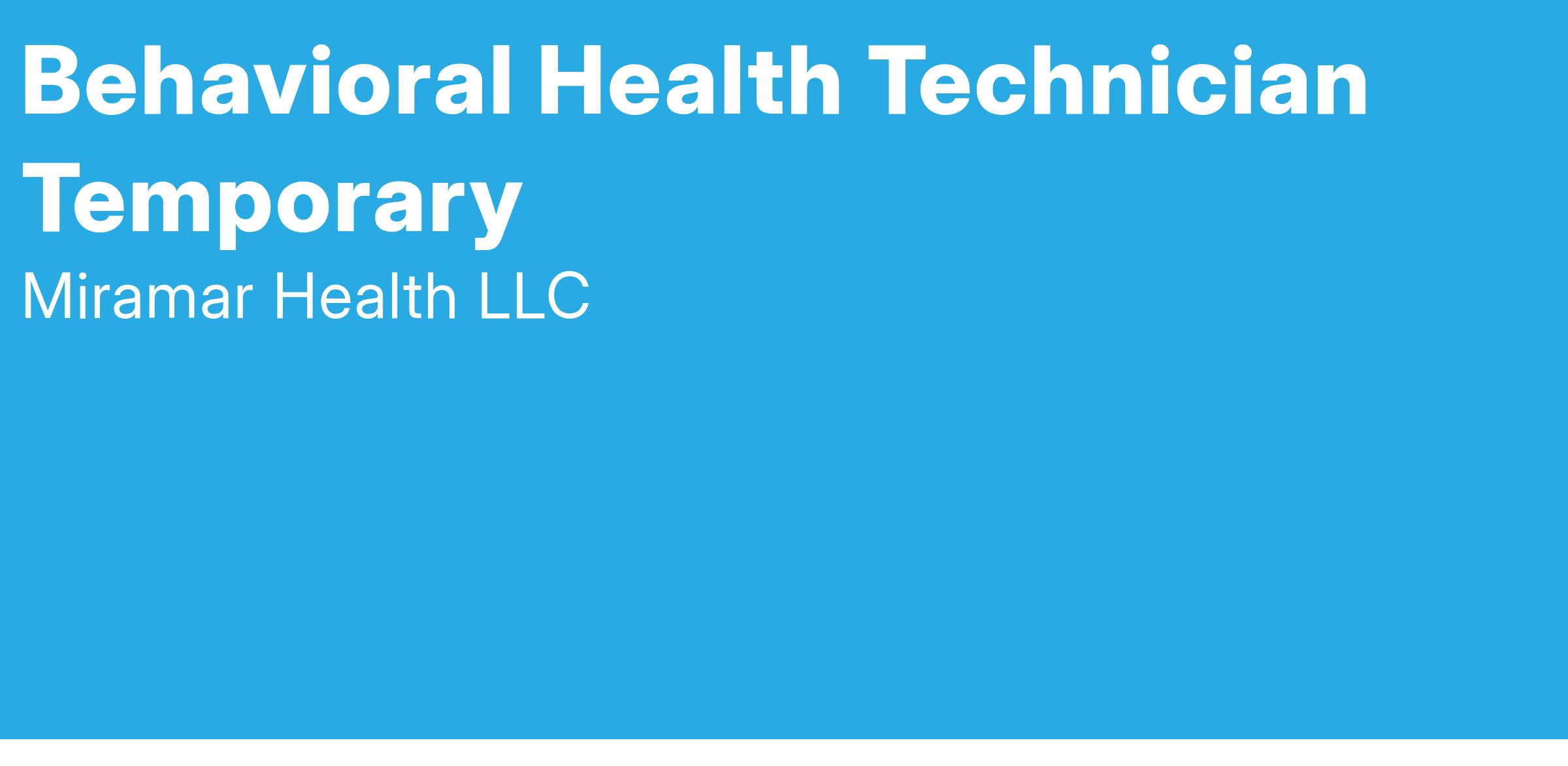 Behavioral Health Technician Temporary