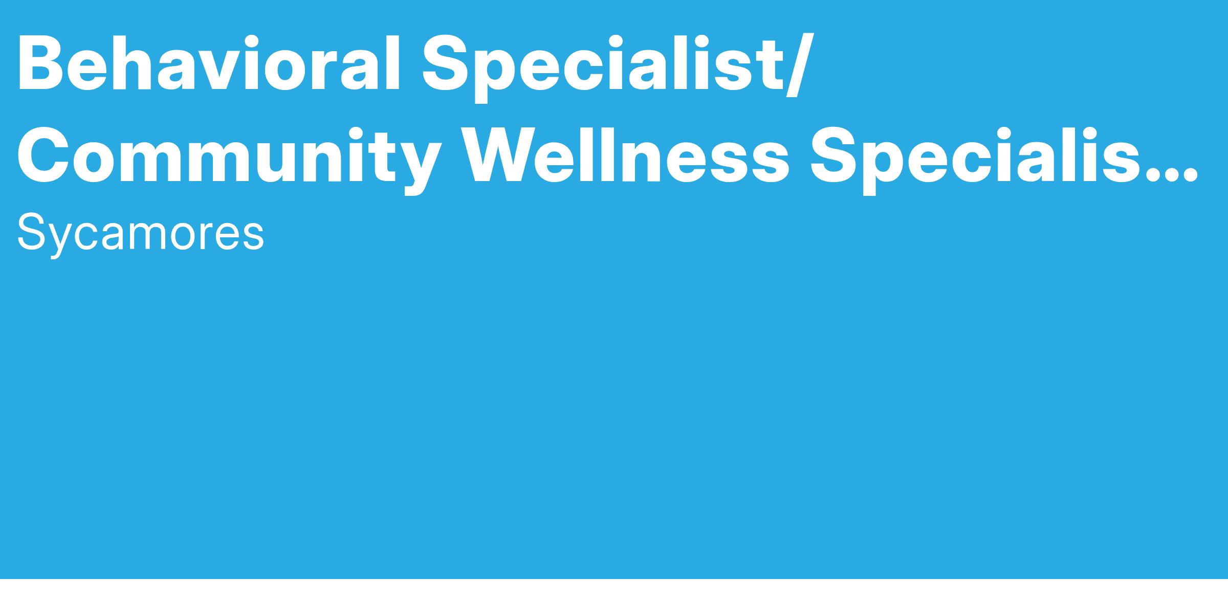 The role of the Community Wellness Specialist is to provide interventions that develop coping and problem-solving skills to promote safety and attachment and teach transference of those skills into the home, school, and community. These interventions are provided to maintain youth at home or to transition youth to home and are developed within the child and family team process. Additionally, this is a position that is focused on wellness and building resilience through interventions, linkages, and referrals to appropriate community resources.