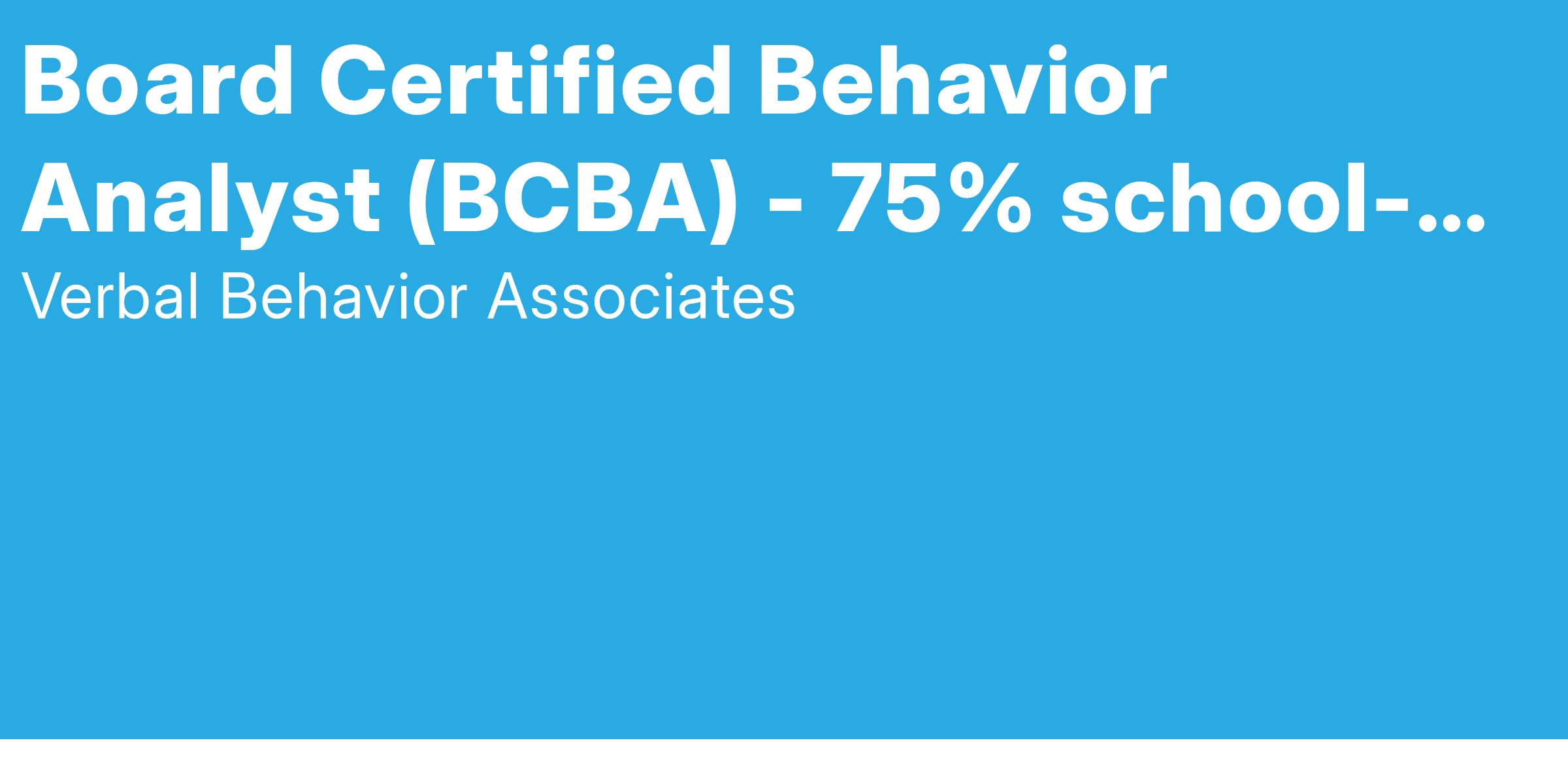 - Work in Schools, with NO Billable Hour Requirements: We want you to spend time doing what you love - providing ABA! - and not stressing about unrealistic hourly goals or jumping through hoops for insurance companies. We clear the path for our BCBAs to provide quality services, impact more clients, and earn more while doing so.
