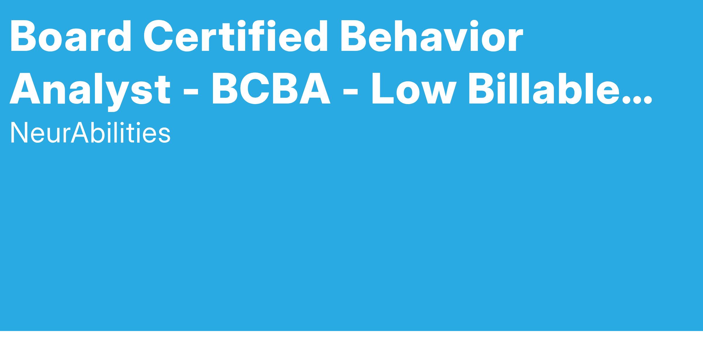 - At NeurAbilities Healthcare, a Board-Certified Behavior Analyst (BCBA) is responsible for conducting behavior assessments and developing individualized intervention plans to correct, maintain, or improve certain behaviors.