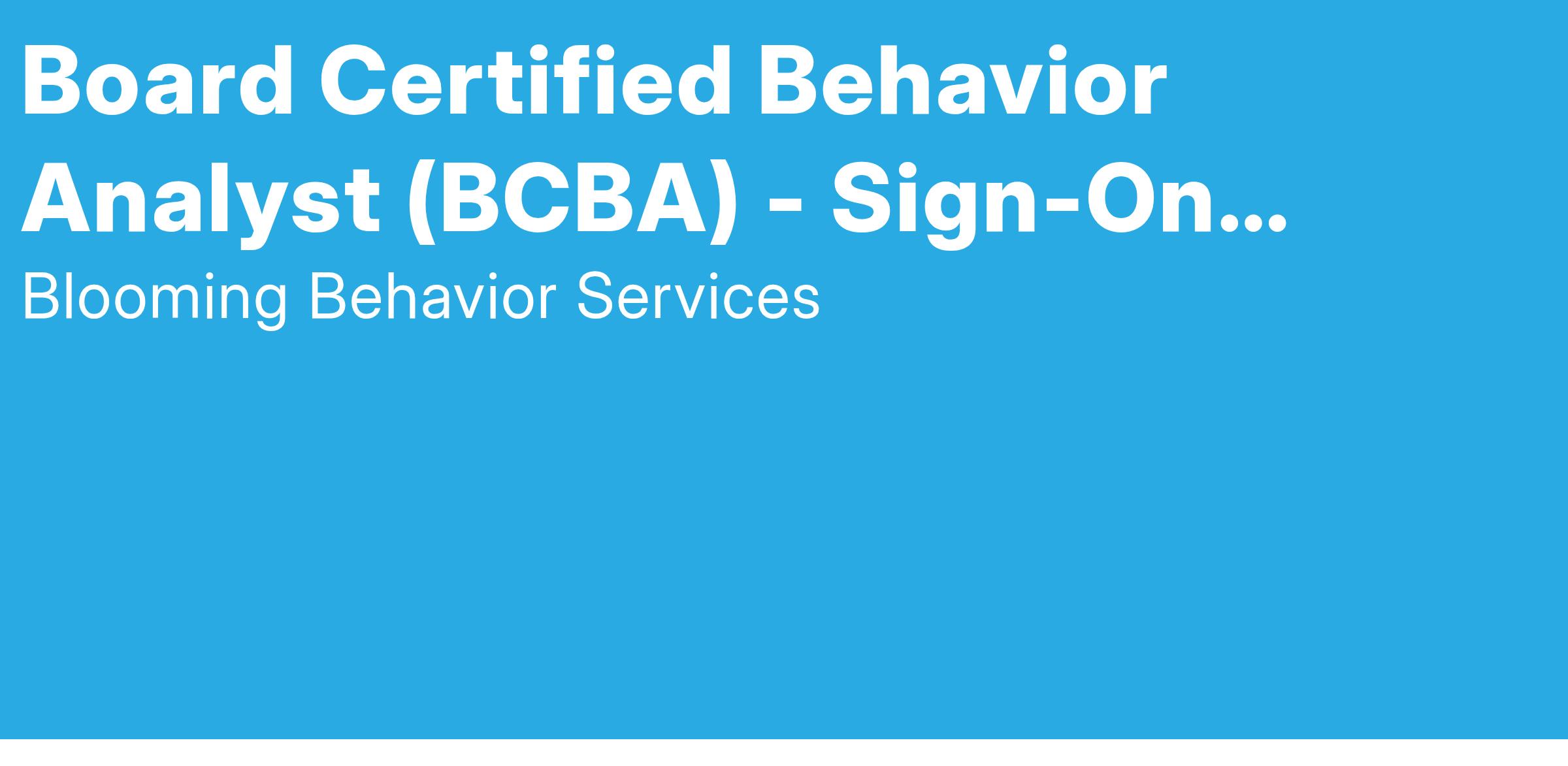 We are looking to hire a Board Certified Behavior Analysts (BCBA) in San Diego with a $3,000 sign on bonus who wants to join a company that is growing, and utilizing their experience to make a large impact on a family's life.