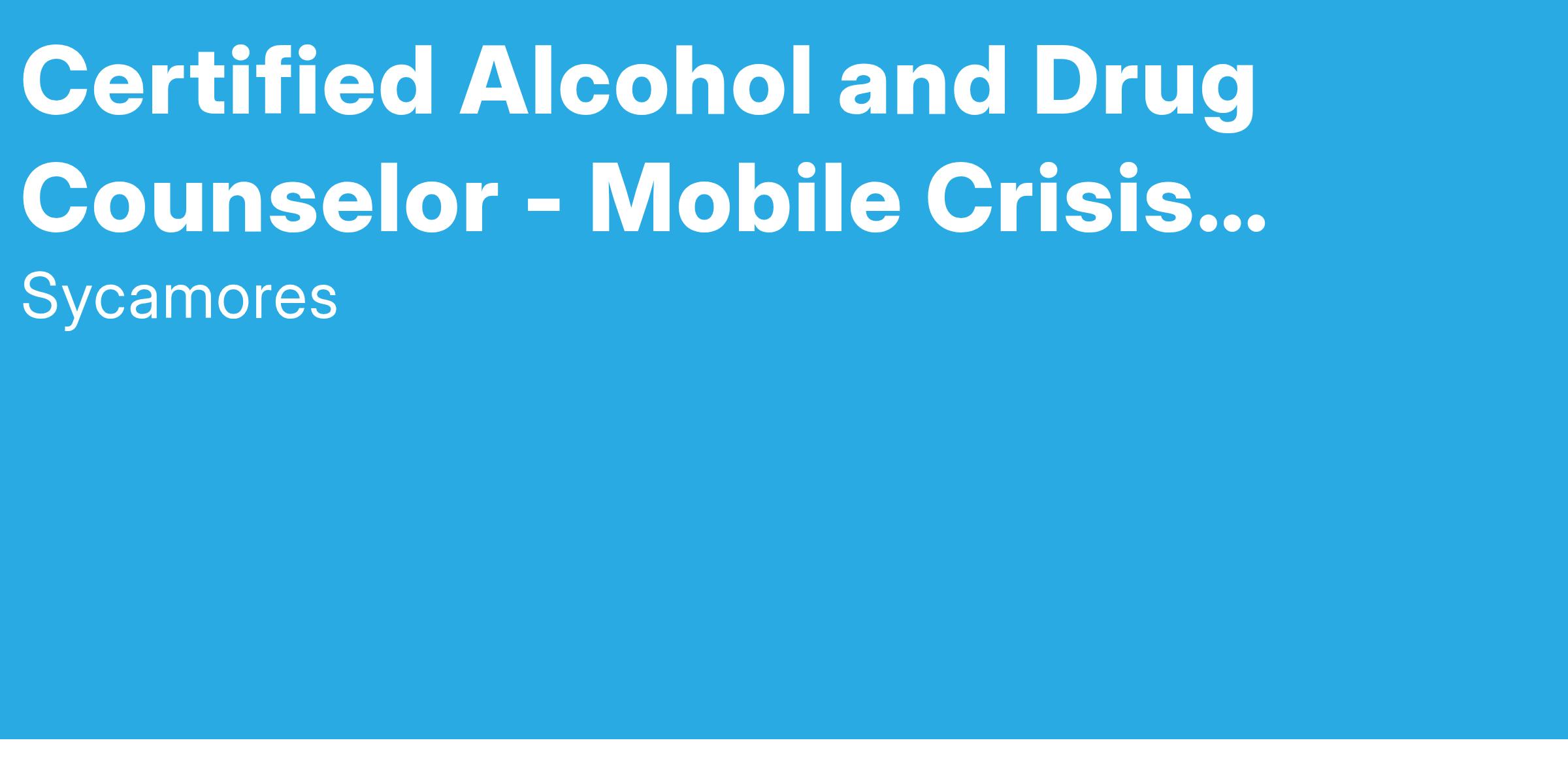 JOB SUMMARY: Sycamores is partnering with the 988 mental health crisis hotline to provide support to people experiencing a mental health crisis. The 988 hotline will provide initial phone support to all callers and triage calls to the Sycamores Mobile Crisis Outreach Program for in-person support. The Mobile Crisis Outreach Team responds 7 days a week from 7:30pm to 8:30am, broken down by flexible shifts. The Mobile Crisis Outreach Certified Alcohol and Drug Counselor II or III (CADC), will respond, in person, to provide timely support including crisis stabilization, safety planning, assessment for danger to self/ others, and gravely disabled write 51/50 holds as needed and provide follow up support. Utilizing the Mobile Crisis Outreach Program vehicle to respond to calls, this role co-responds with a Mobile Crisis Outreach Program Peer Support Specialist and is an integral part of the Sycamores larger Mobile Crisis Outreach Program including close partnership with the 988 call center, Riverside County Dispatch Center, police, sheriff, psychiatric hospitals and ambulance transport companies.