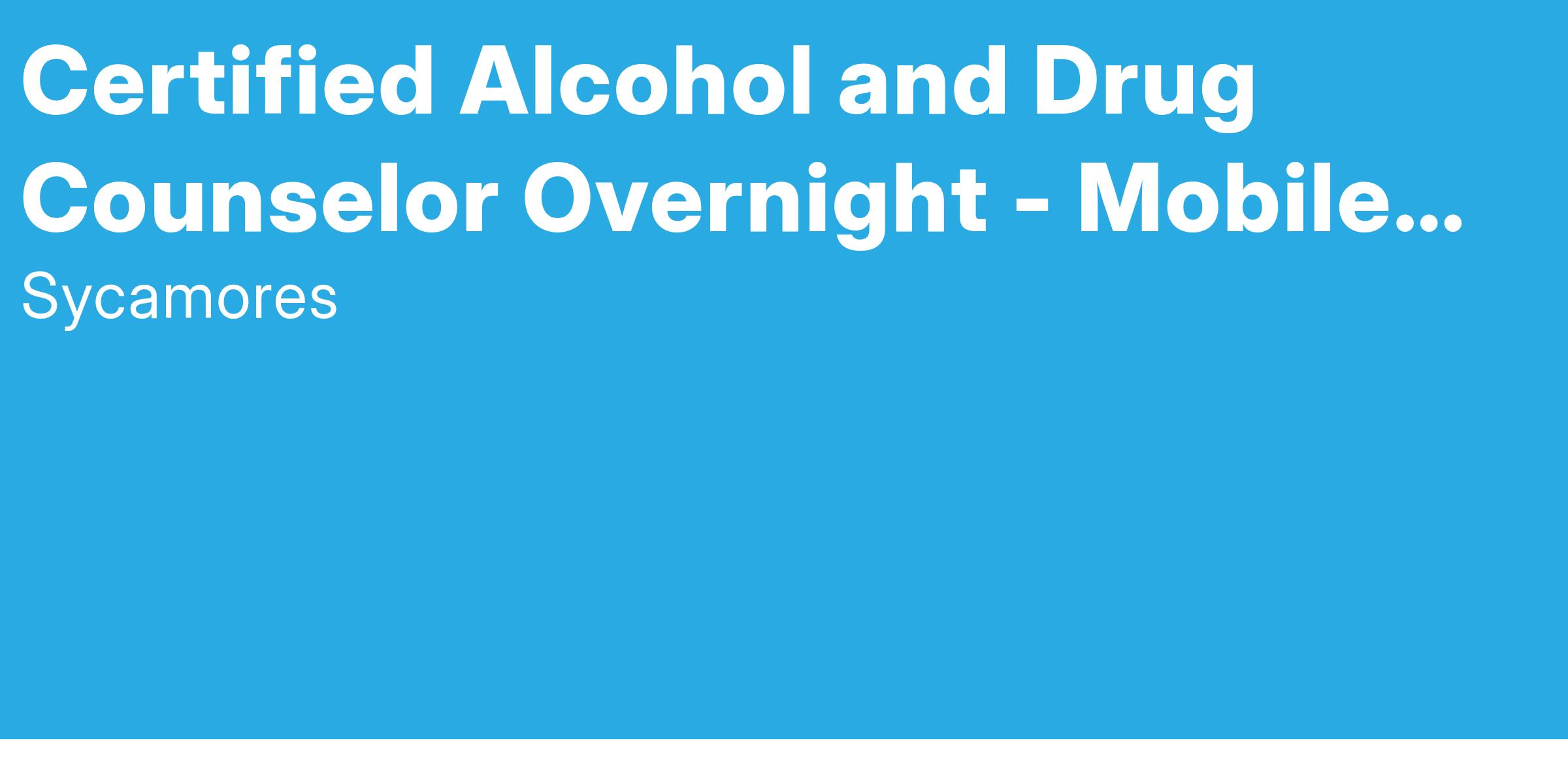 JOB SUMMARY: Sycamores is partnering with the 988 mental health crisis hotline to provide support to people experiencing a mental health crisis. The 988 hotline will provide initial phone support to all callers and triage calls to the Sycamores Mobile Crisis Outreach Program for in-person support. The Mobile Crisis Outreach Team responds 7 days a week from 7:30pm to 8:30am, broken down by flexible shifts. The Mobile Crisis Outreach Certified Alcohol and Drug Counselor II or III (CADC), will respond, in person, to provide timely support including crisis stabilization, safety planning, assessment for danger to self/ others, and gravely disabled write 51/50 holds as needed and provide follow up support. Utilizing the Mobile Crisis Outreach Program vehicle to respond to calls, this role co-responds with a Mobile Crisis Outreach Program Peer Support Specialist and is an integral part of the Sycamores larger Mobile Crisis Outreach Program including close partnership with the 988 call center, Riverside County Dispatch Center, police, sheriff, psychiatric hospitals and ambulance transport companies.