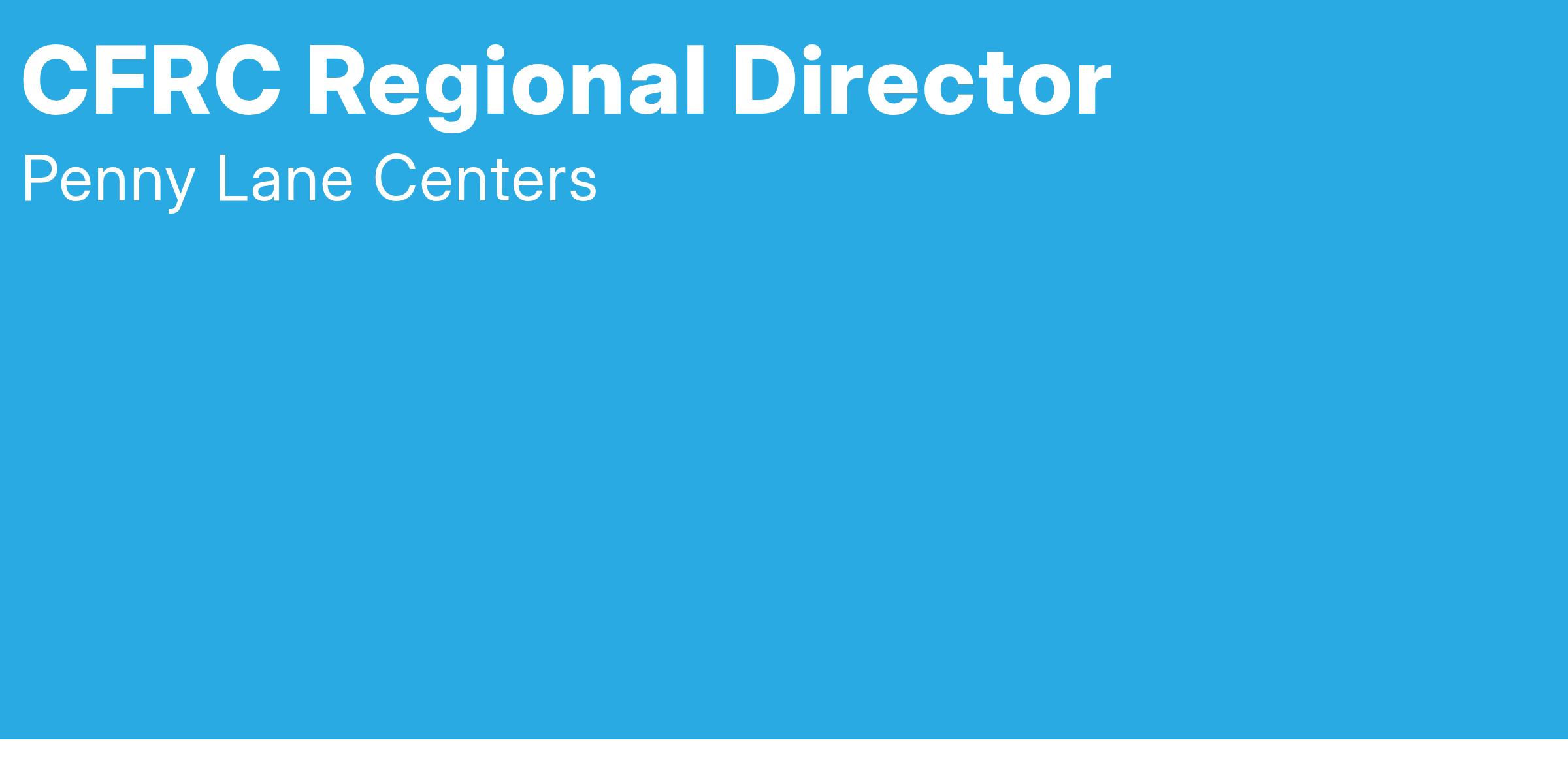 The CFRC Regional Director follows all Penny Lane Centers policies and procedures regarding the Heart Centered Culture, cultural sensitivity, and cultural awareness. The Regional Director supports the agency mission and vision in their interaction with children, youth, families, and partner agencies.