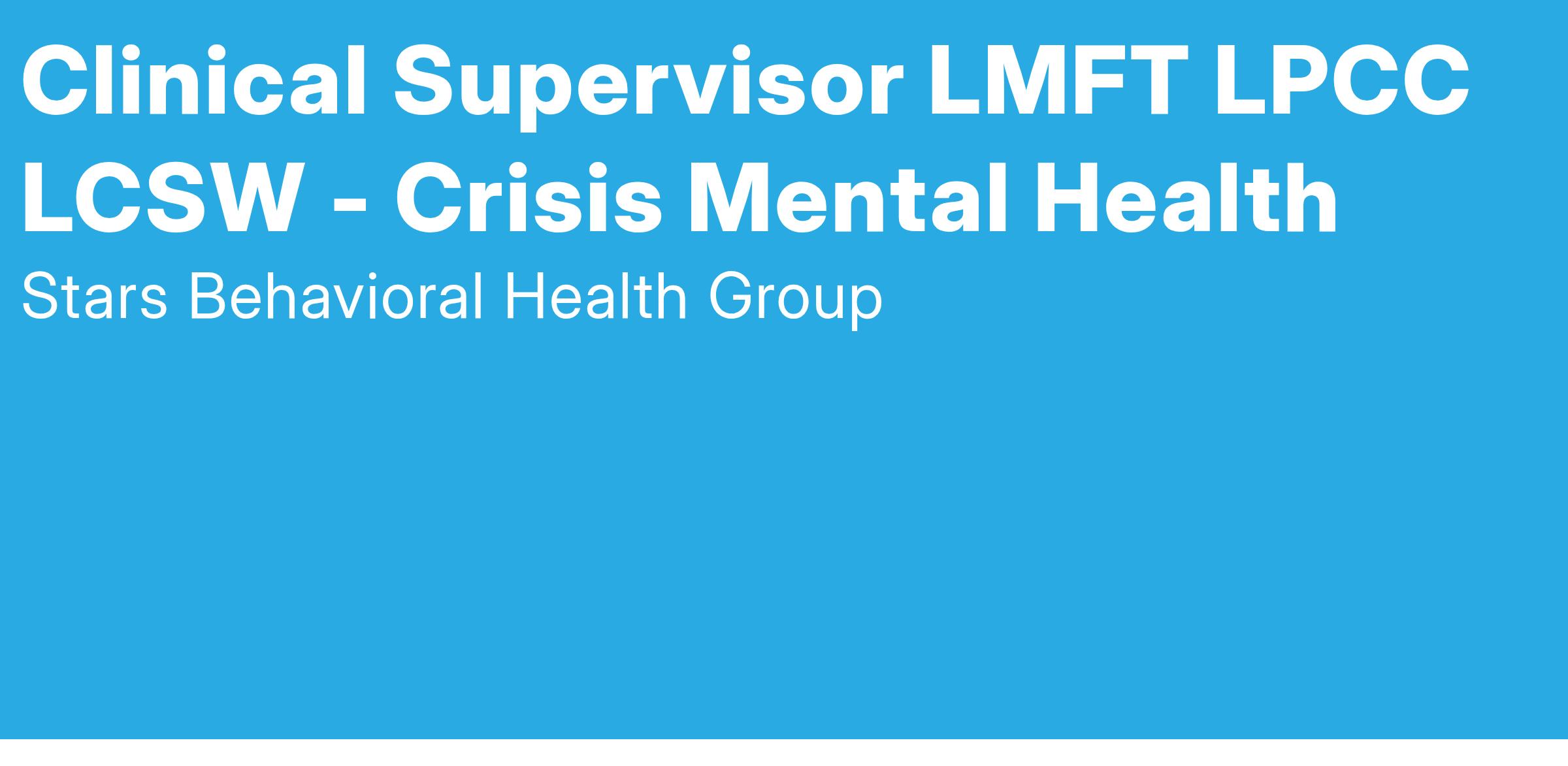 Clinical Supervisor LMFT LPCC LCSW - Crisis Mental Health
