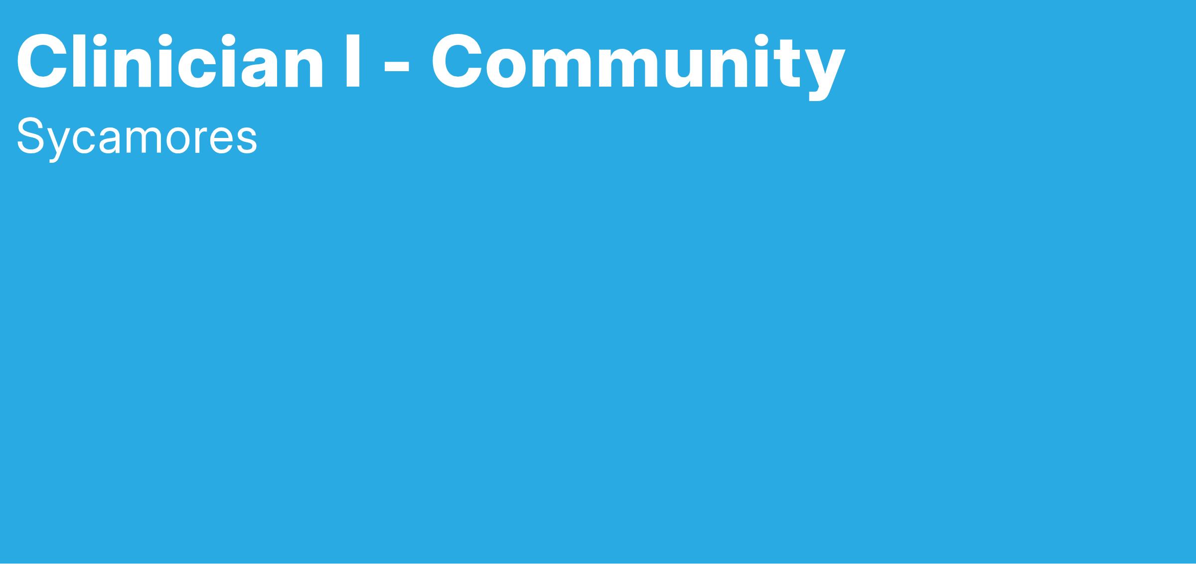 JOB SUMMARY: Sycamores provides a spectrum of equitable mental health services through various programs to multicultural populations of all acuities. Although it serves a variety of consumers, the agency focuses primarily on providing care for low-income, high at-risk youth.
