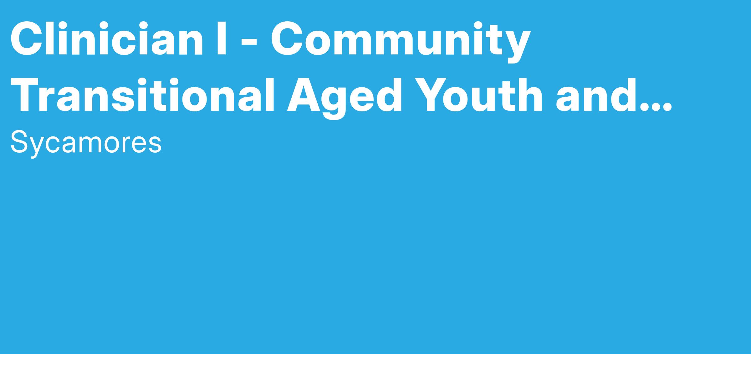 JOB SUMMARY: Sycamores provides a spectrum of equitable mental health services through various programs to multicultural populations of all acuities. Although it serves a variety of consumers, the agency focuses primarily on providing care to low-income, high at- risk youth.