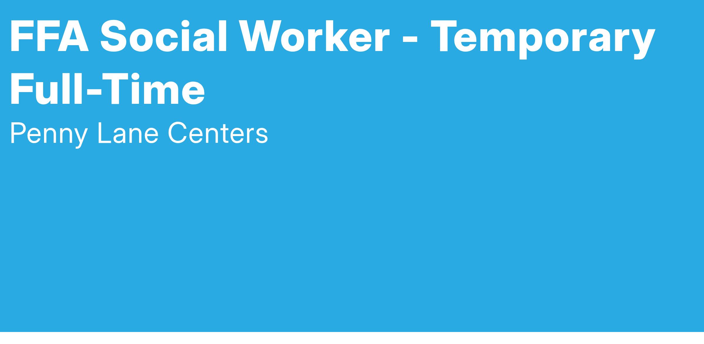 The Foster Care Social Worker follows all Penny Lane Centers policies and procedures regarding the Heart Centered Culture, cultural sensitivity, and cultural awareness. They also support the agency mission and vision in their interaction with children, youth, families, and partner agencies.