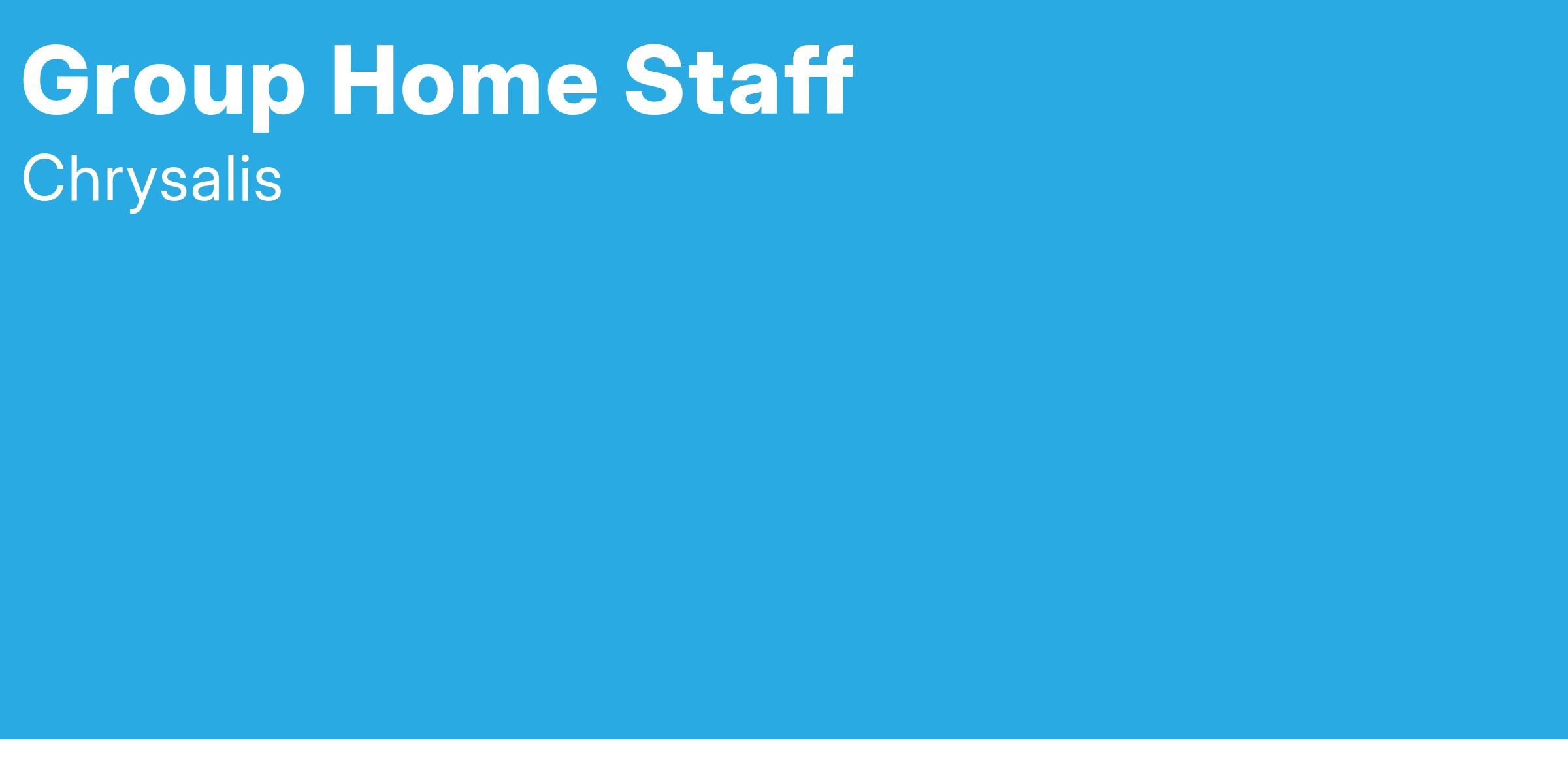 Chrysalis is seeking to hire full-time or part-time Group-Home Staff. Would you like to support individuals with developmental disabilities to lead self-directed, meaningful lives? Are you looking for a full-time or part-time job with swing shifts, and graveyard shifts available that can work with your schedule? Are you considering a human services career where you can really make a difference? If so, please read on!