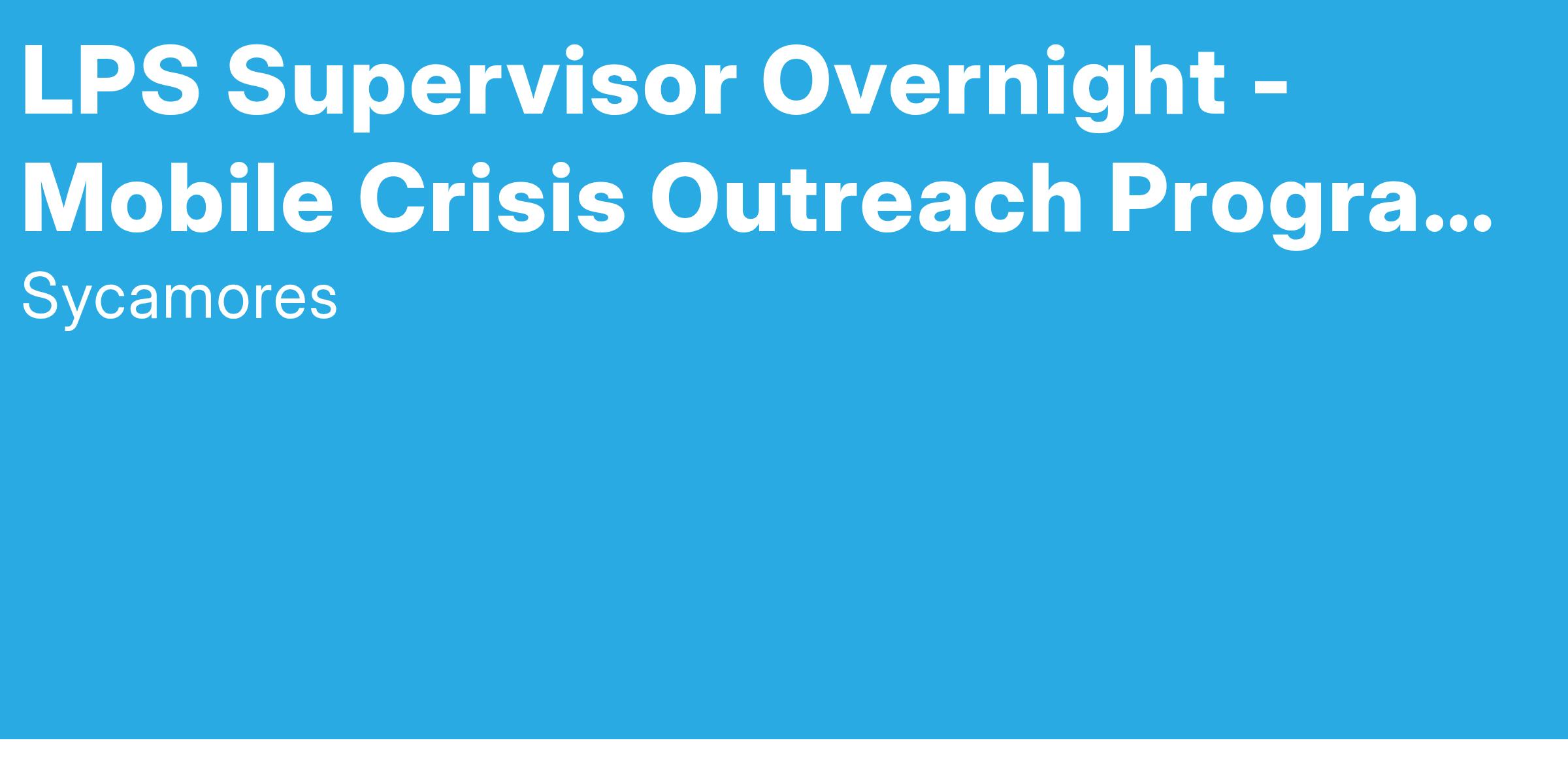 JOB SUMMARY: Sycamores is partnering with the 988 mental health crisis hotline to provide support to people experiencing a mental health crisis. The 988 hotline will provide initial phone support to all callers and triage calls to the Sycamores Mobile Crisis Outreach Program for in-person support. The Mobile Crisis Outreach Program will respond out to the community to provide timely support including crisis stabilization, safety planning, assessment for danger to self/ others, and gravely disabled write 51/50 holds as needed and provide follow up support. The LPS Supervisor will provide support and supervision to the Mobile Crisis Outreach Program and be an integral part of the Sycamores larger Mobile Crisis Outreach Program. Close partnership with the 988-call center, Riverside County Dispatch Center, police, sheriff, psychiatric hospitals, and ambulance transport companies will be important in this role.