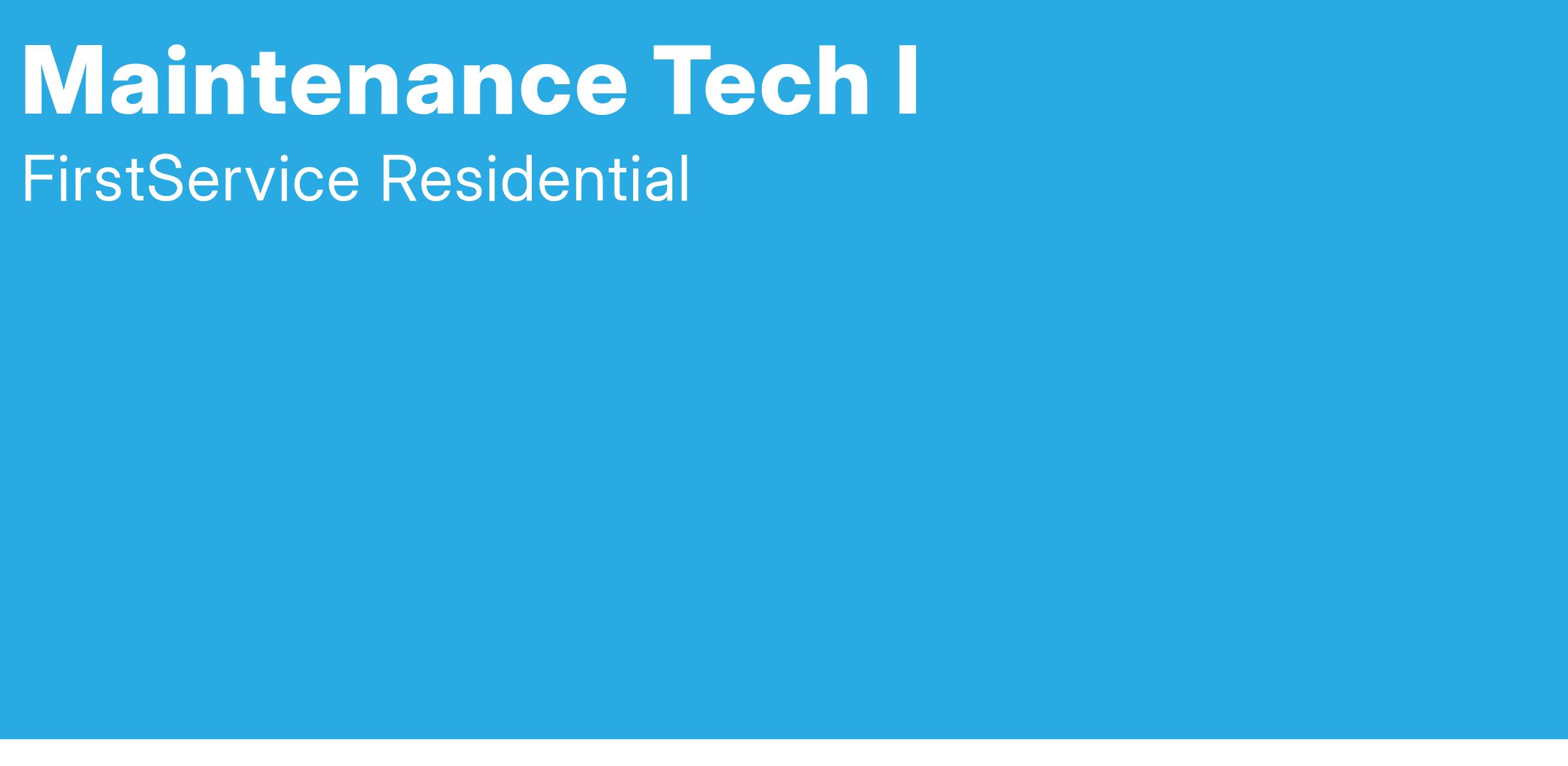 Job Overview: The Maintenance Tech I is a reliable, detail-oriented individual who will support the Facilities and Projects Manager (F&PM) and Operations Manager (OM) by performing general maintenance and repair tasks across the community. The master planned community of Ladera Ranch is located in South Orange County. The community is managed by Ladera Ranch Maintenance Corporation (LARMAC) which consists of over 8,000 homes. The community is spread out across 4,000 acres of landscape, parks, trails, pools, clubhouses, reservable indoor and outdoor spaces, water park, skate park, sports fields, tennis/pickleball courts and more. Compensation: $19-21/hr FirstService Residential will compensate the successful candidate in accordance with the posted range. The salary or wage paid to the successful candidate will be commensurate with experience, education, and specific job responsibilities. For positions designated at a client's property, the salary or wage will also be premised upon the client's directive. The base pay range is subject to change and may be modified in the future. Job Responsibilities: The job duties listed are typical examples of the work performed by positions in this job classification. Not all duties assigned to every position are included, nor is it expected that all positions will be assigned every duty.