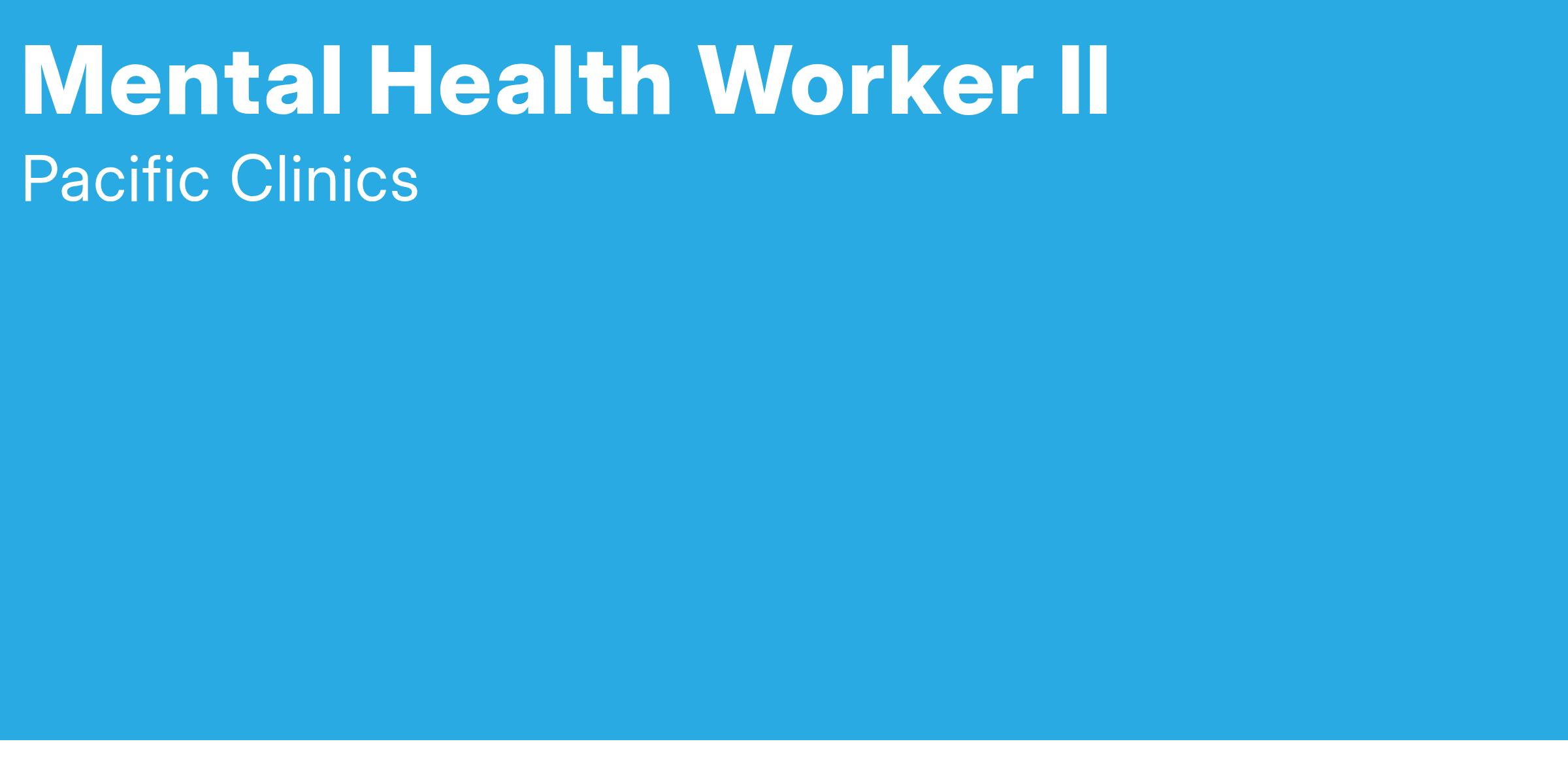 Pacific Clinics is California's largest community-based nonprofit provider of behavioral and mental health services and support. Our team of more than 2,000 employees speak 22 languages and are dedicated to offering hope and unlocking the full potential of individuals and families through culturally responsive, trauma-informed, research-based services for individuals and families from birth to older adults.