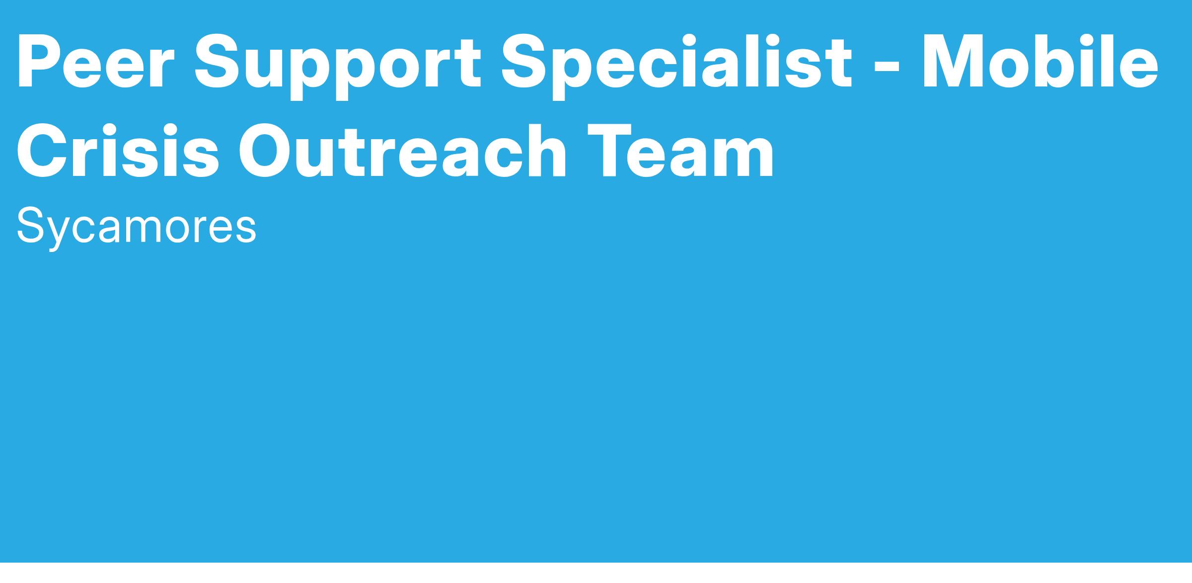 The Mobile Crisis Outreach Team responds 24/7, 365 days a year, broken down by shifts. The Mobile Crisis Outreach Peer Support Specialist will respond, in conjunction with the MCOT clinician, to provide timely support including crisis stabilization, safety planning, community resources and provide follow up support. Utilizing the Mobile Crisis Outreach Team van to respond to calls, this role is an integral part of the Sycamores larger Mobile Crisis Outreach Team (MCOT), including close partnerships with the 988-call center, police, sheriff, psychiatric hospitals, and ambulance transport companies.