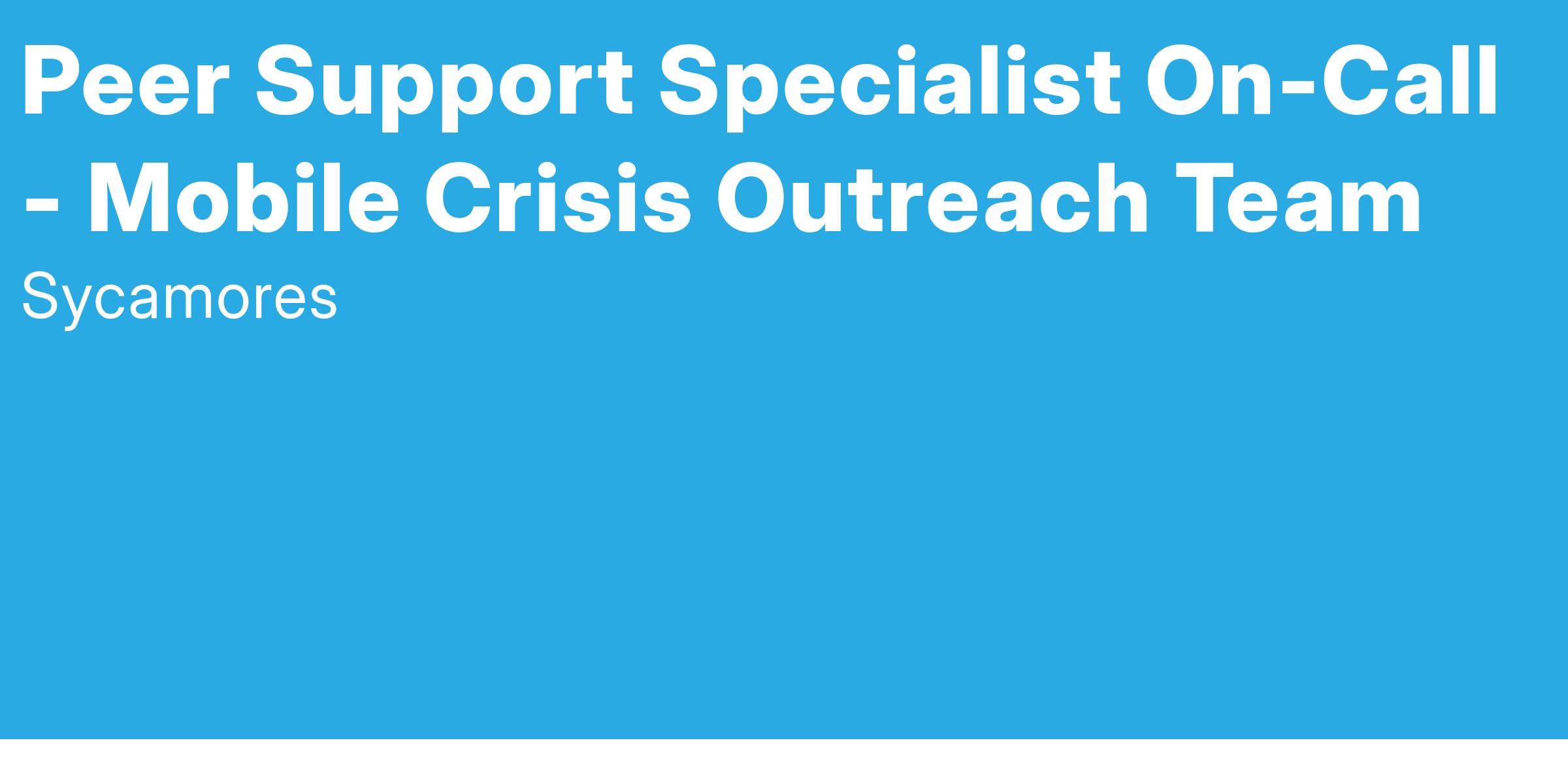 JOB SUMMARY: Sycamores is partnering with the 988 mental health crisis hotline to provide support to people experiencing a mental health crisis. The 988 hotline will provide initial phone support to all callers and triage calls to the Sycamores Mobile Crisis Outreach teams for in-person support.