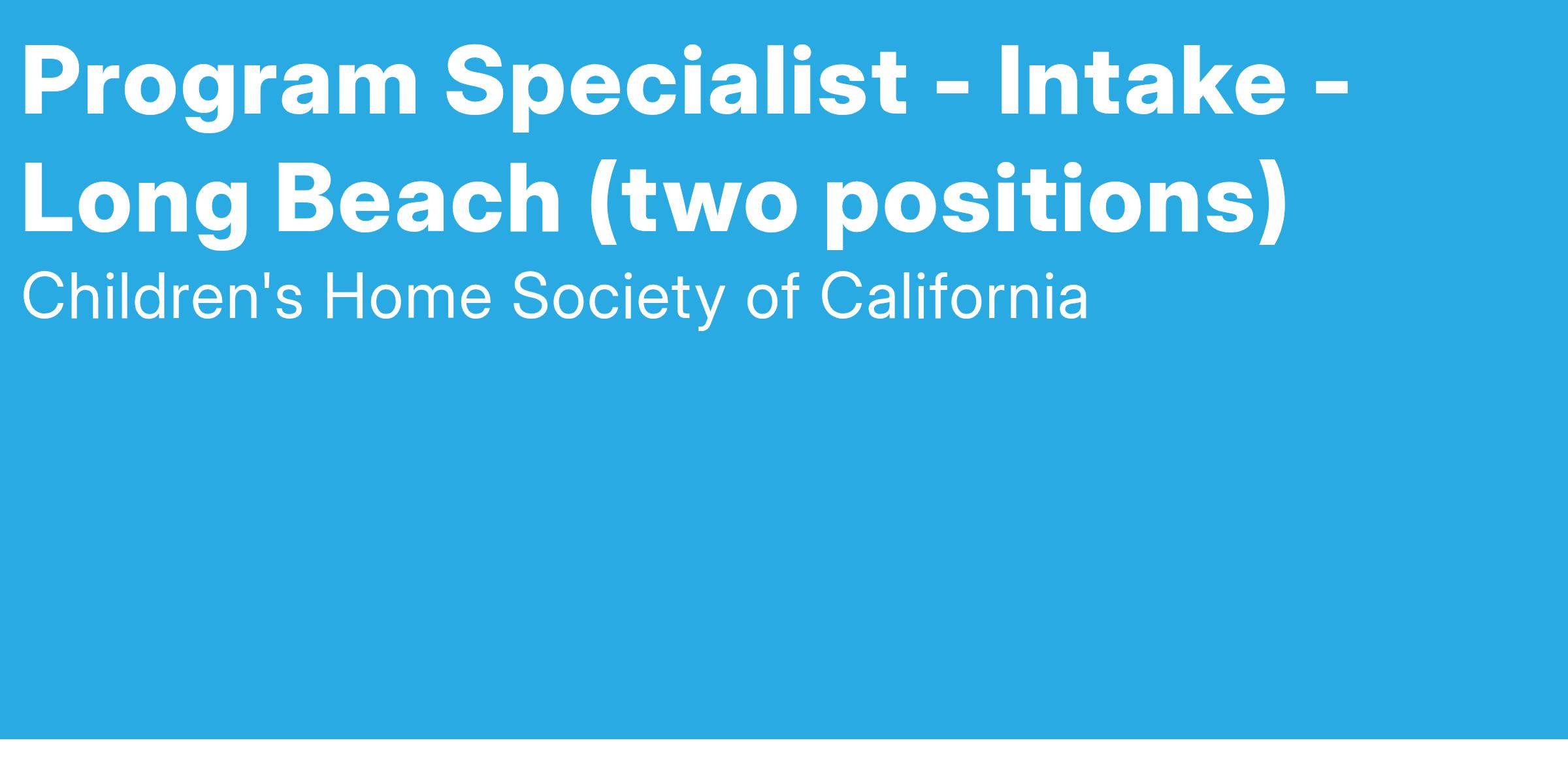 Under the supervision of Children’s Home Society of California’s (CHS) Program Manager, the Program Specialist will:
