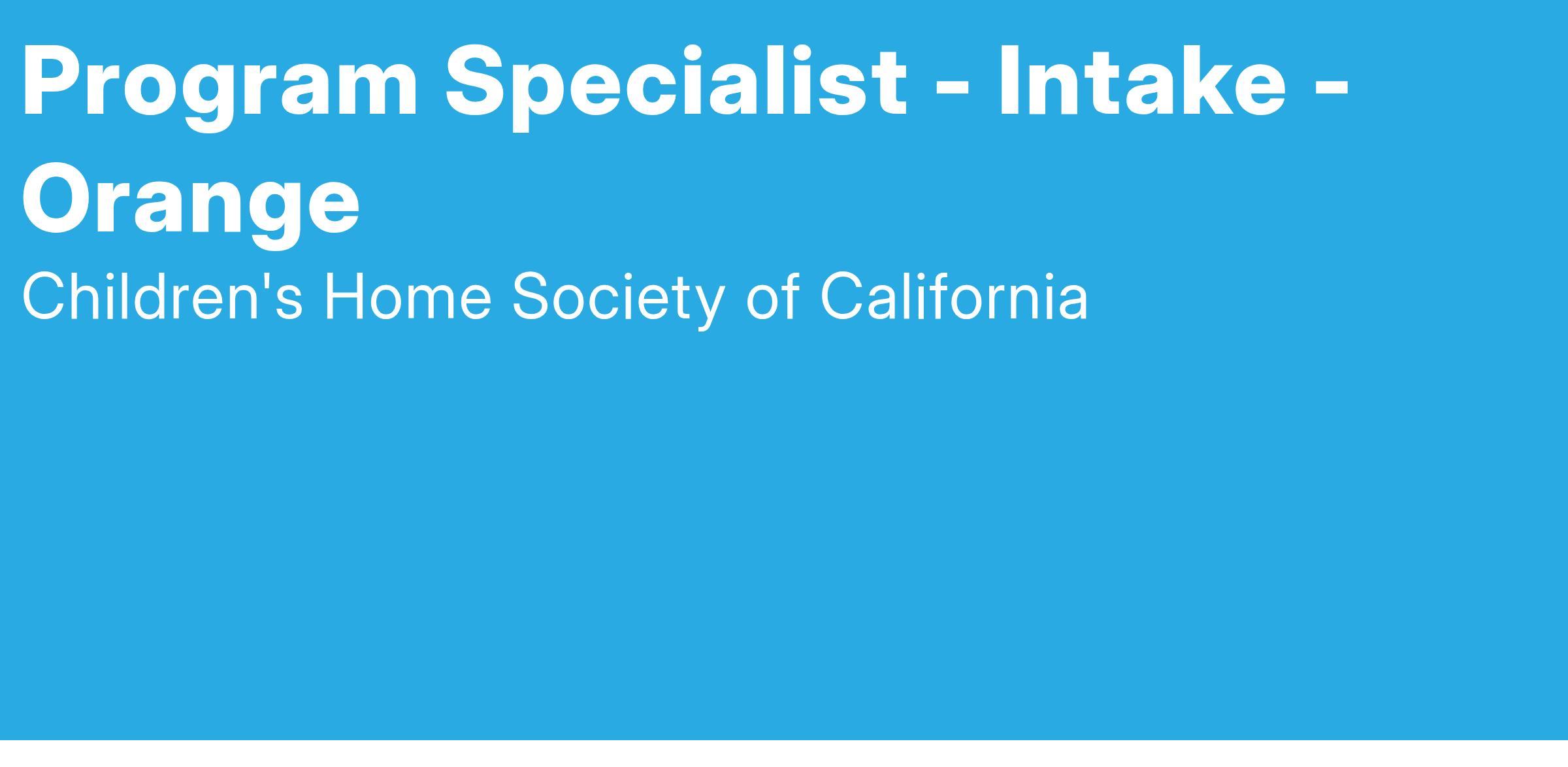 Under the supervision of Children’s Home Society of California’s (CHS) Program Manager, the Program Specialist will: