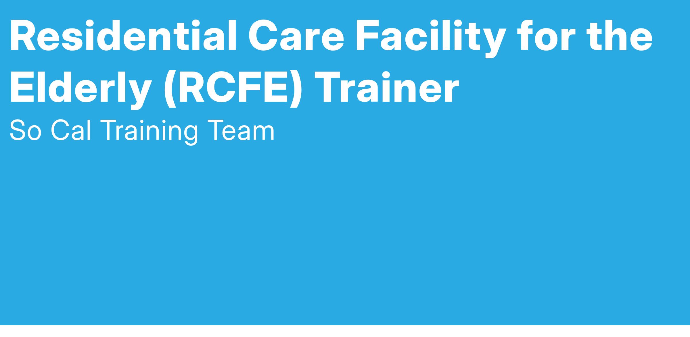 We are seeking a knowledgeable and experienced Residential Care for the Elderly (RCFE) trainer to deliver training programs for, new and existing administrators, support personnel working in elderly care settings. The trainer will be responsible for teaching the RCFE 80-hour initial certification and continuing education in compliance with California Title 22 and Community Care Licensing requirements.
