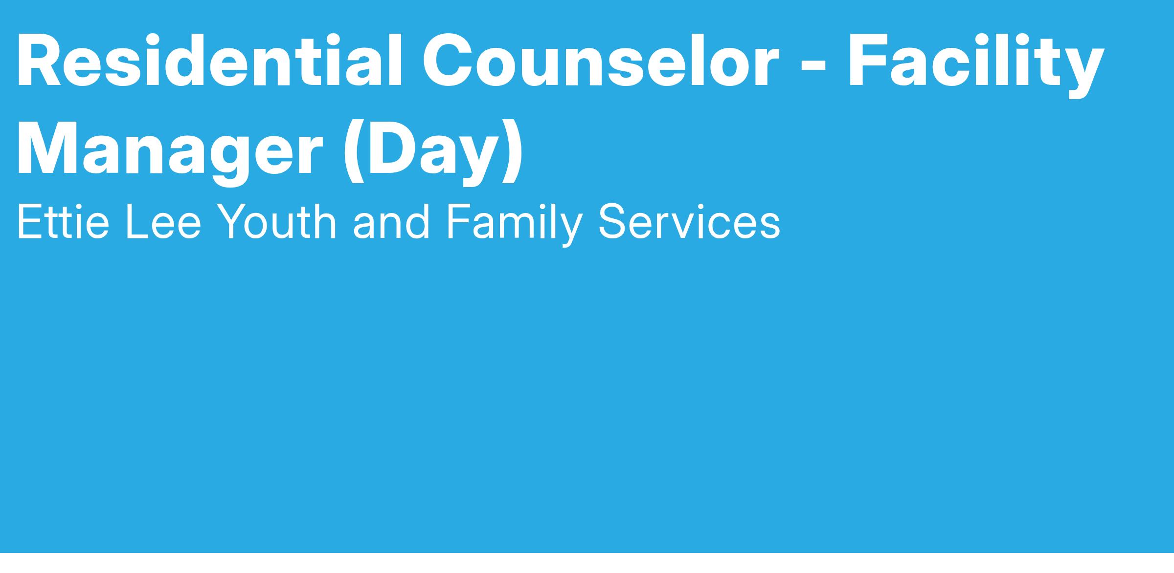 Counselors are crucial to the Ettie Lee team as they provide direct care to the youth served. They must come to the position with a great amount of dedication, acceptance and understanding. It is important they are resilient with a great deal of "bounce back" due to the pressures of the work.