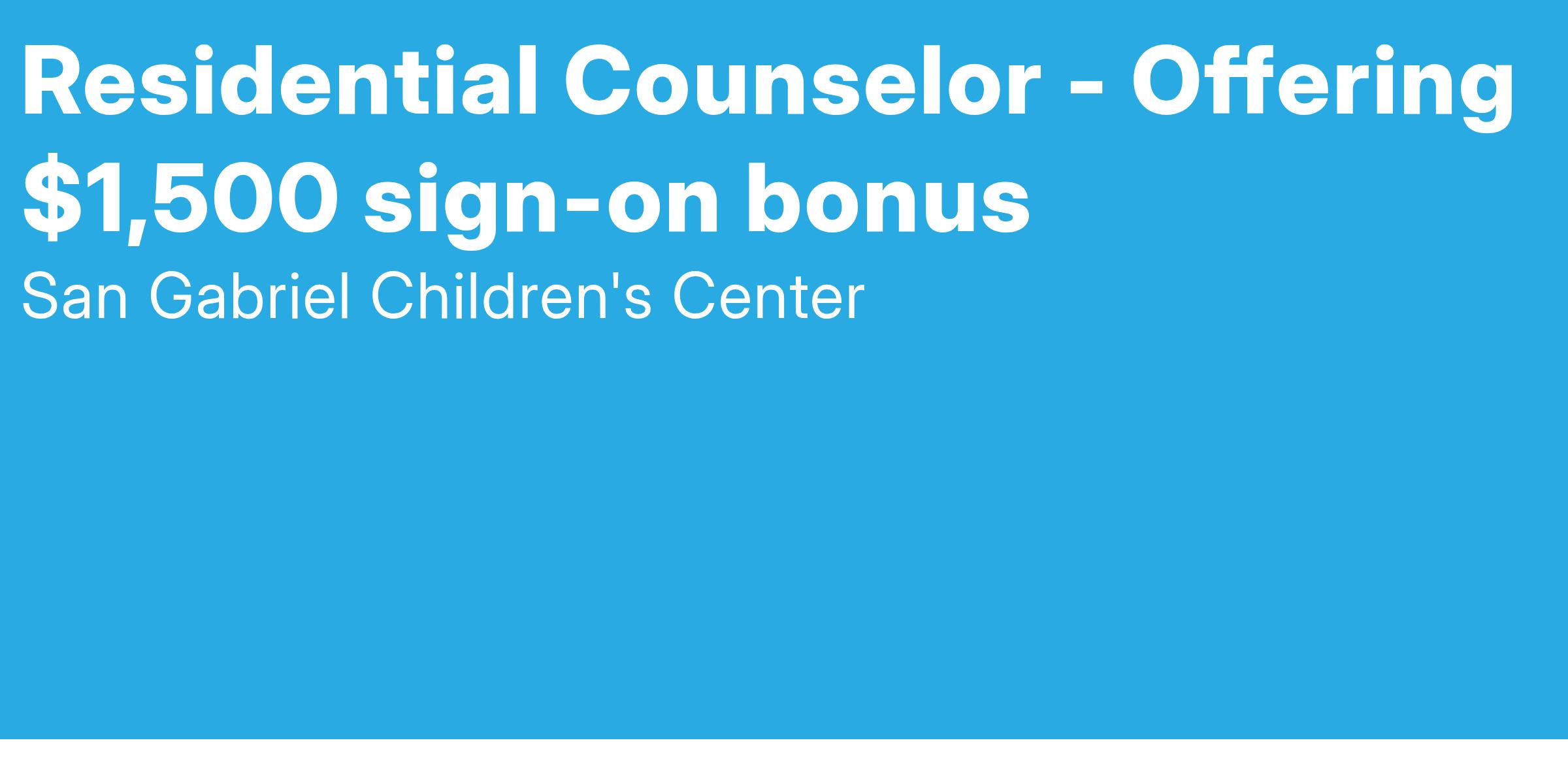 San Gabriel Children’s Center reserves the right to close the application period, without notice, when a significant number of applications/resumes have been received or the position becomes filled.