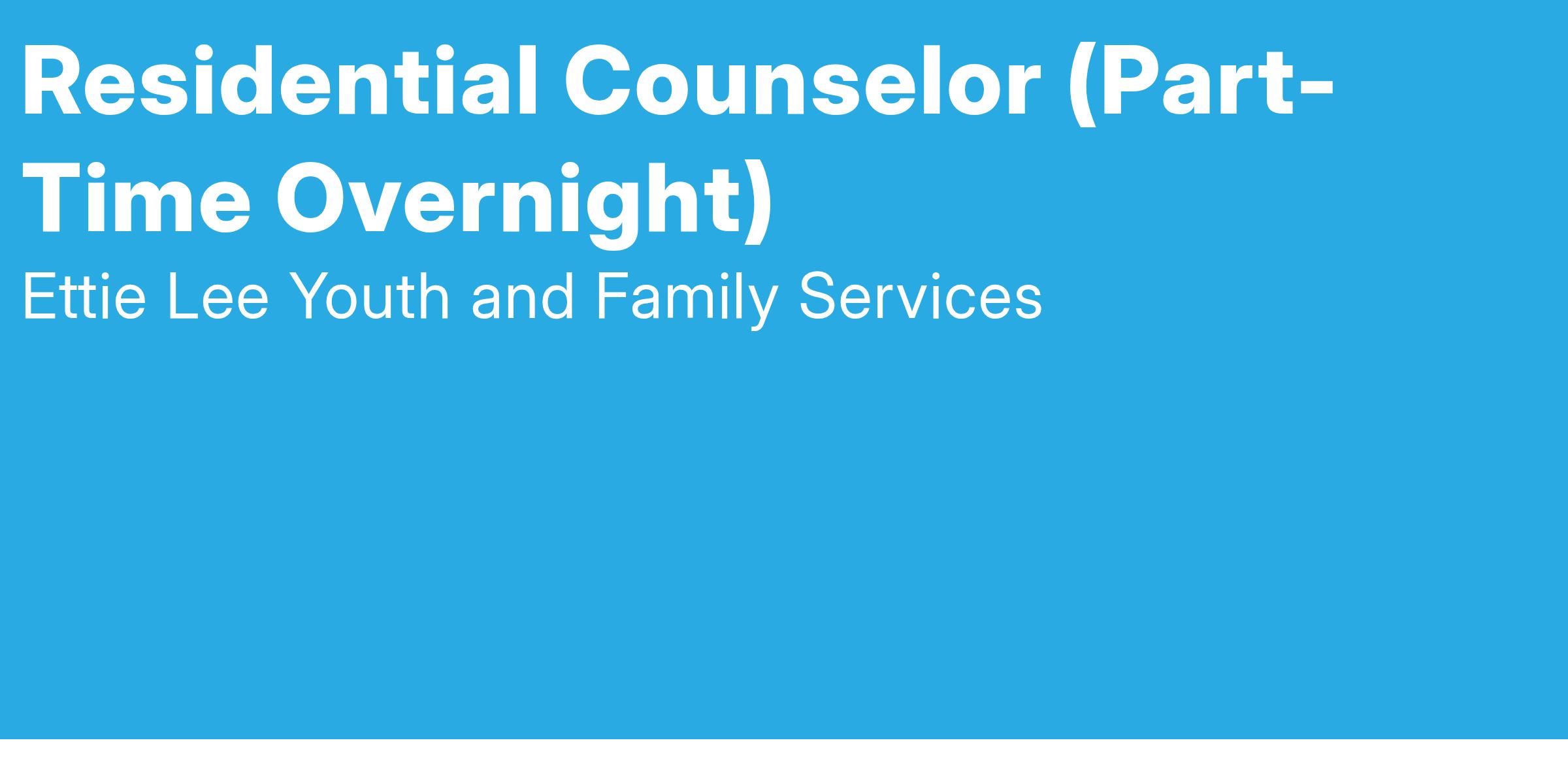 Currently, Ettie Lee is seeking a Part-Time, Overnight Residential Counselor for its Short Term Residential Treatment Program (STRTP) location in Bloomington and Redlands, CA.