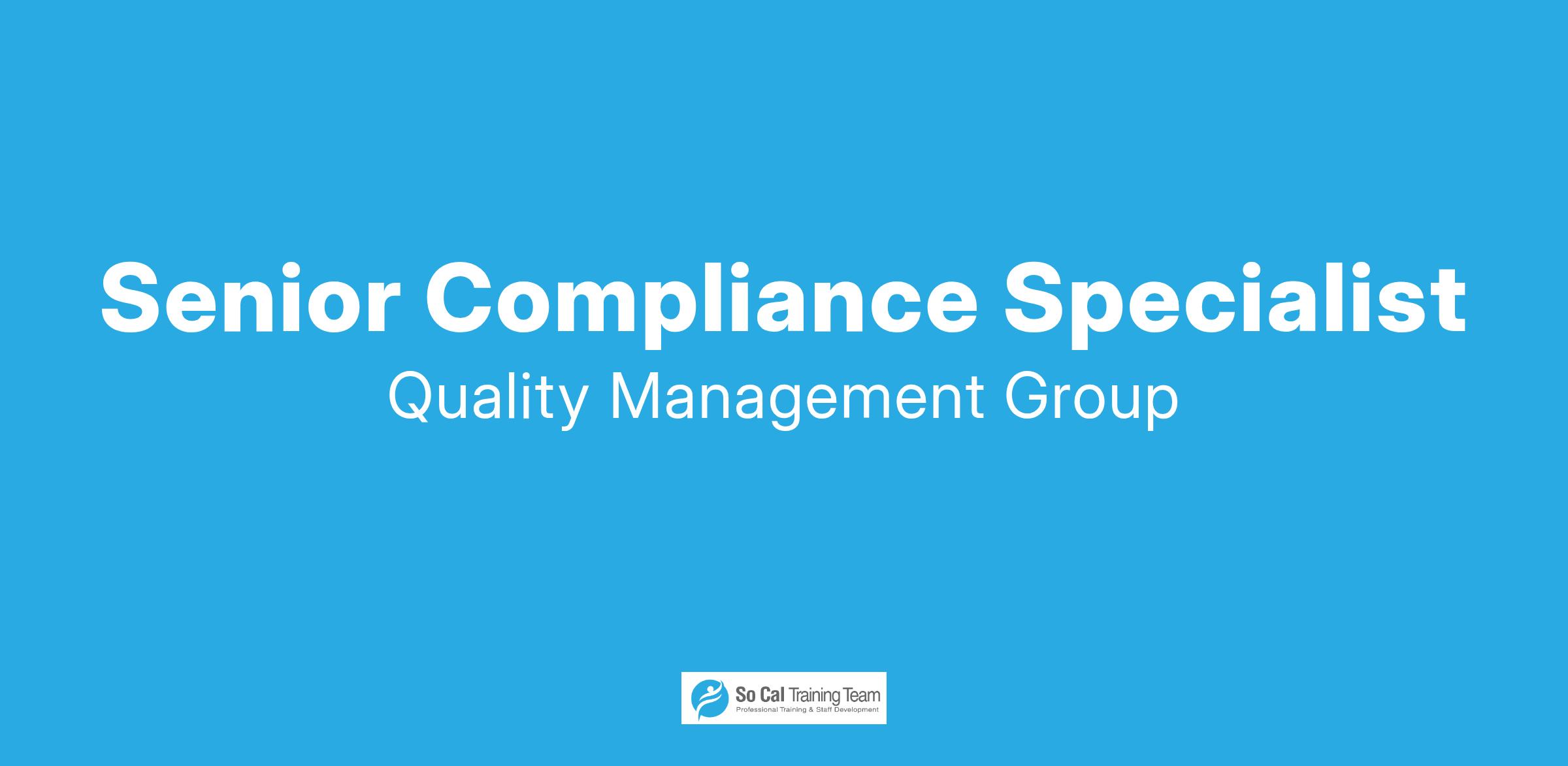 - The Senior Compliance Specialist provides regulatory program research to help resolve conflicts and management with information to establish fair and sustainable compliance policies.