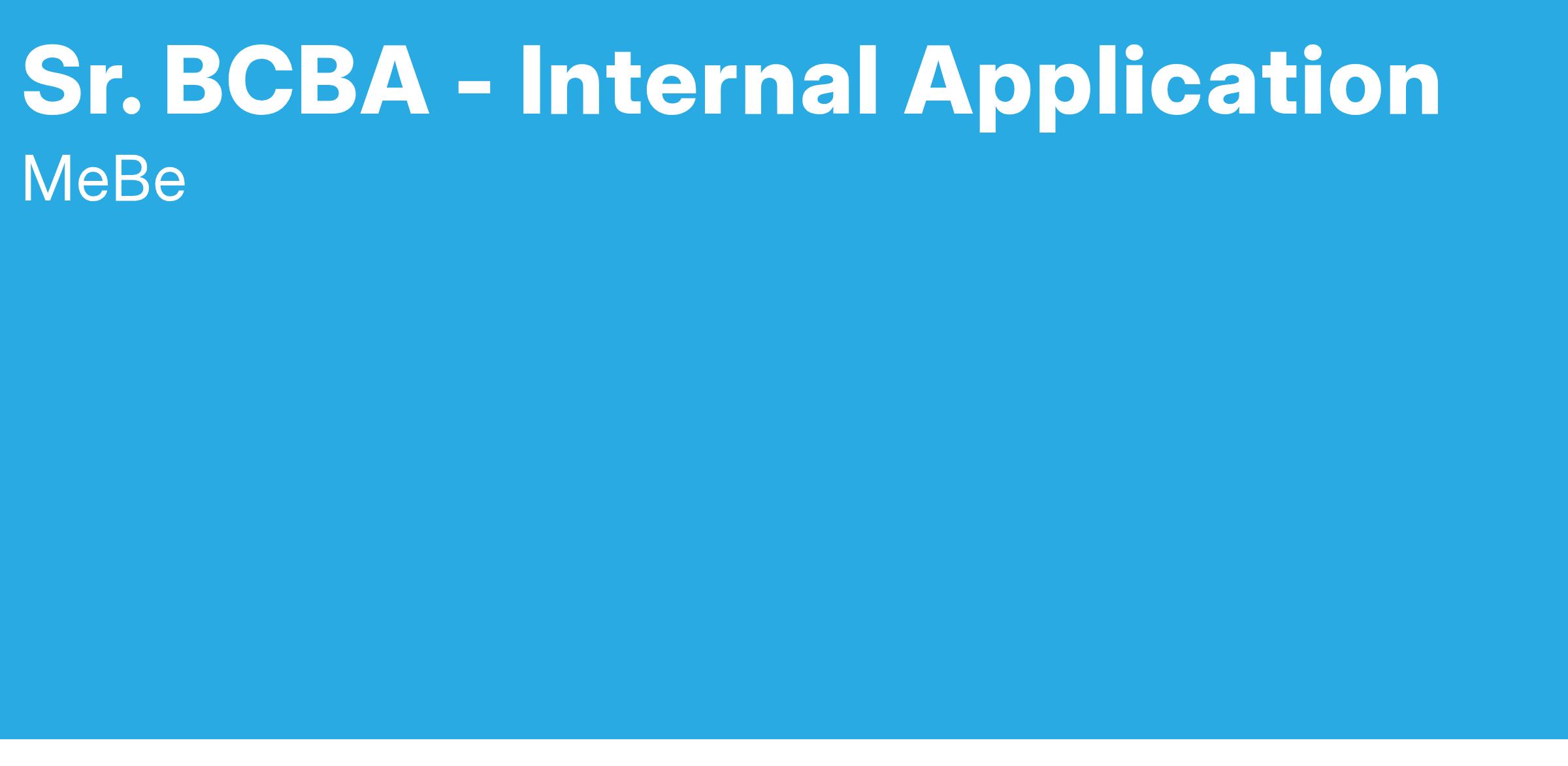 At MeBe, you’ll be offered more than a job. You’ll receive training and support to help you develop your career in Behavior Therapy and grow as an individual. You’ll work with extraordinary team members in ABA, OT and Speech who share a common goal, to help children with autism be their best selves. Your days will be filled with meaning and purpose.